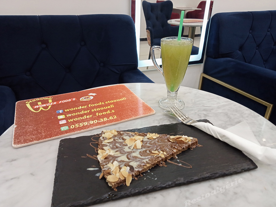 Découvrez « Wonder food’s Staouali », cette crêperie où vous pouvez faire une halte pour déguster votre café ou jus avec des délicieuses crêpes.